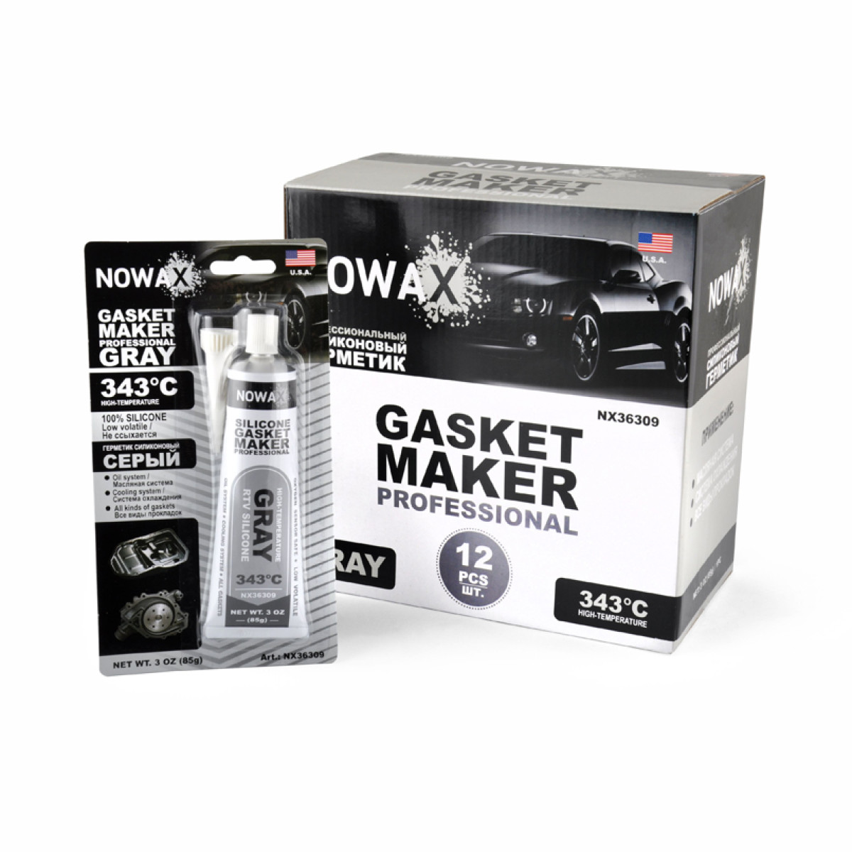 Герметик прокладок високотемпературний, 100% силіконовий, СІРИЙ (85g +343⁰C) NX36309