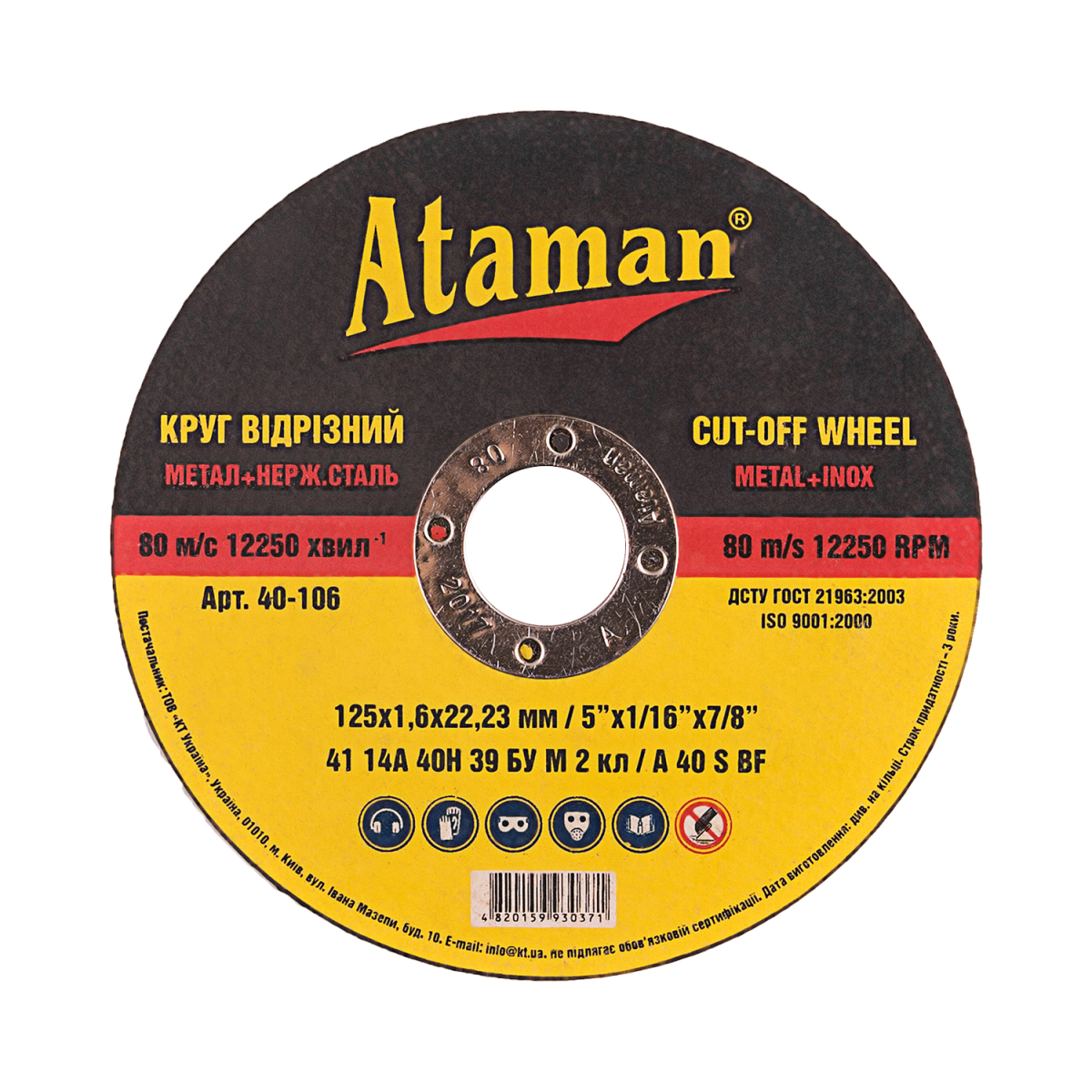 Круг відрізний по металу 14А - 125*1.6*22 - Ataman