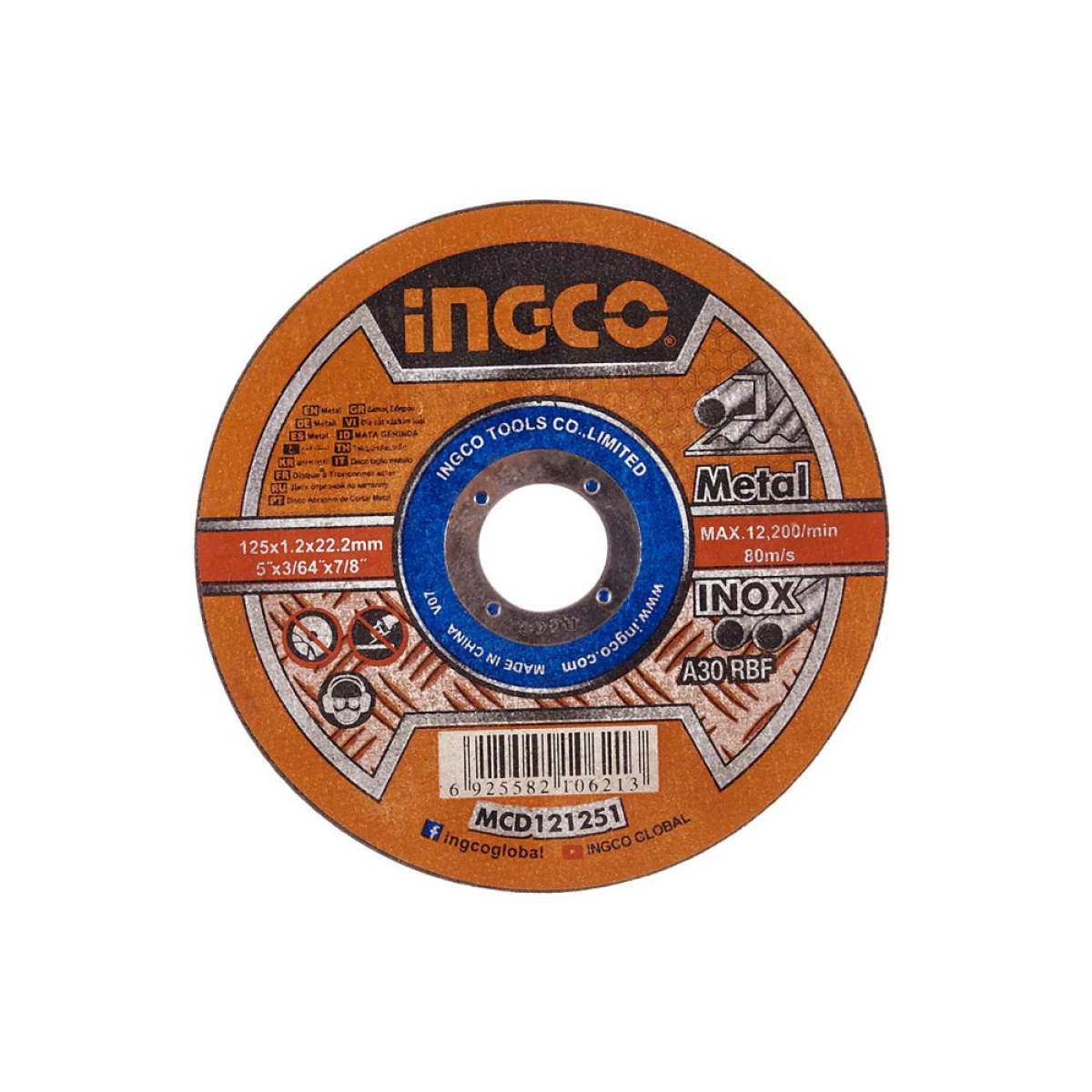 Абразивний відрізний диск по металу 125x1,2x22,2 мм INGCO MCD121251