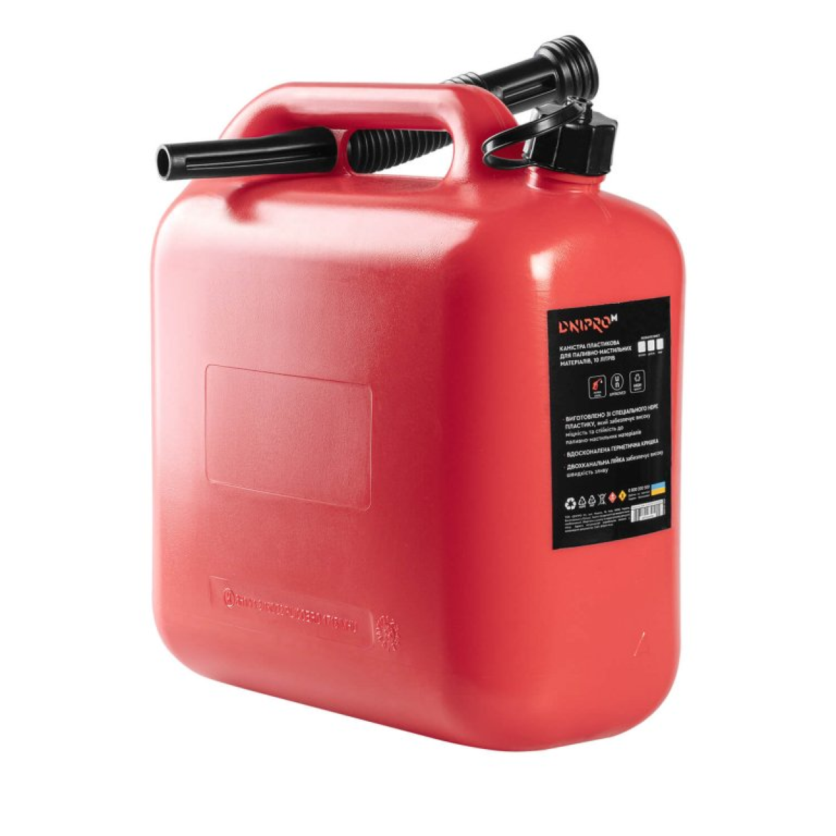 Увага! Тримайте каністру якнайдалі від джерел полум'я, зберігайте в добре провітрюваному місці, недоступному для дітей. Не заповнюйте каністру до горловини.